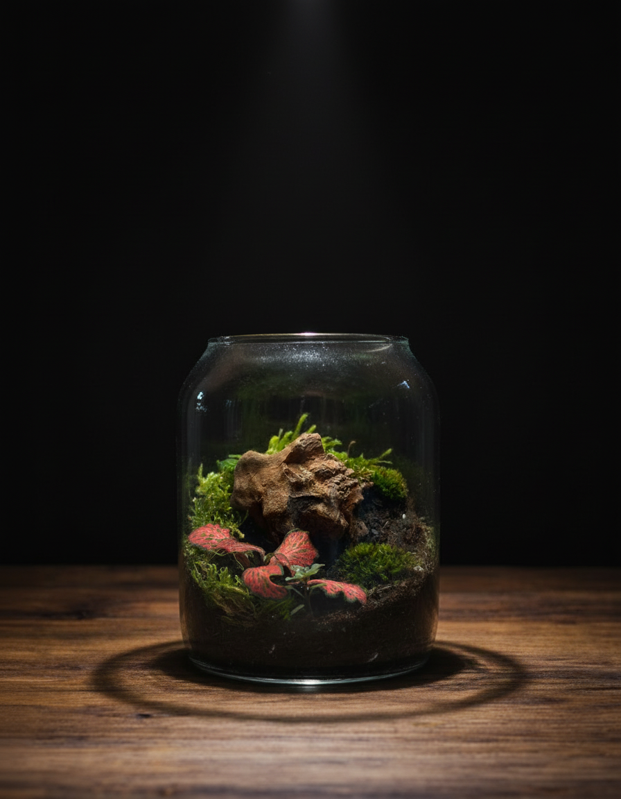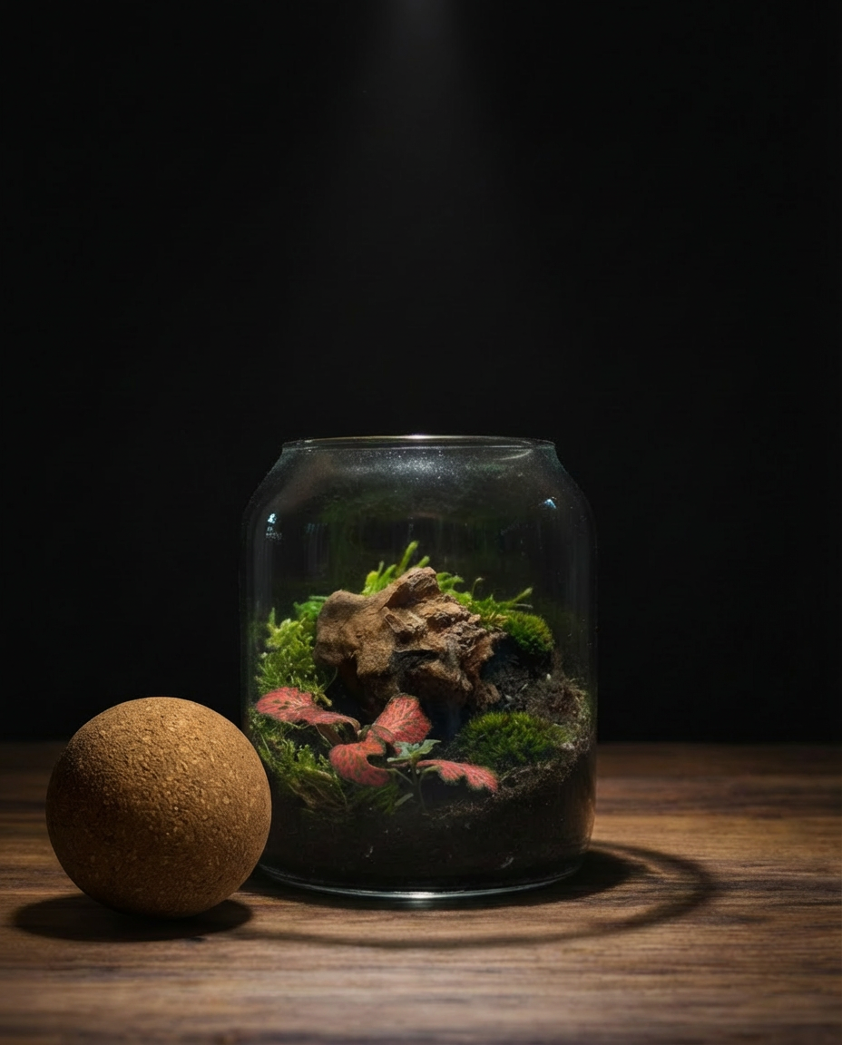 TerrariOh! explorează relatia dintre natura si obiect. Fiecare piesă este construită manual, ca un mic ecosistem autonom. O prezentă vie care nu cere atentie, ci o oferă.